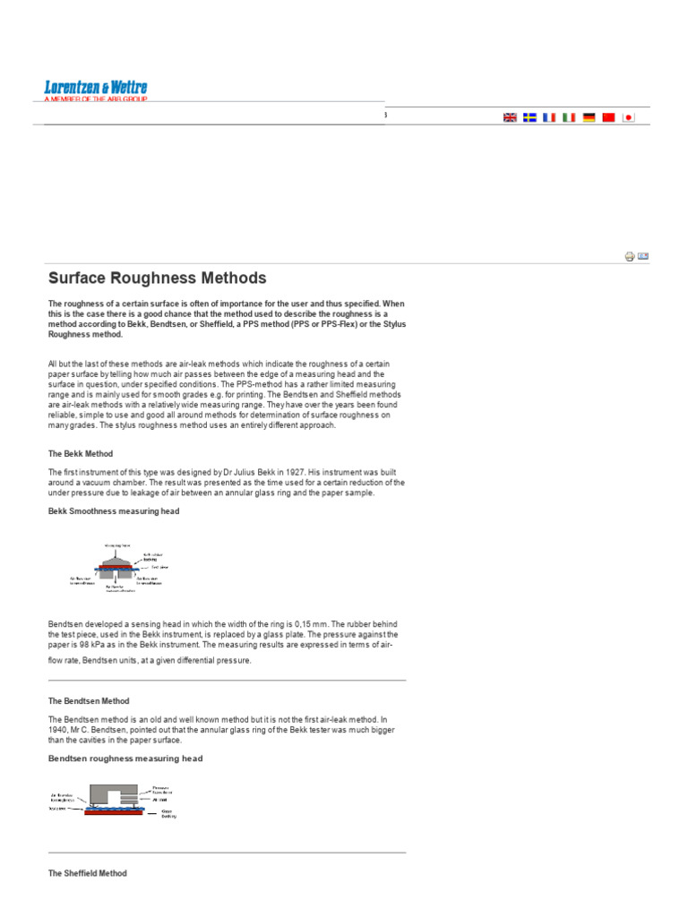 Surface Roughness Methods Lorentzen & Wettre PDF Surface Roughness Pressure